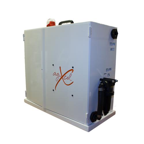2. Hook up a tote of impregnation solution to AgXcel’s GX20 Dry Treater injection unit connected to a horizontal impregnation line.