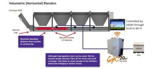 1. If you are currently using an impregnation ring successfully, there is no need to change the application equipment. However, replacement of the impregnation ring with 2-3 flat fan nozzles at top of the blender is generally recommended for more uniform impregnation.