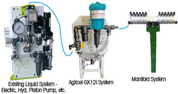 The GX12i does not require any electrical components to operate the injector system but uses the system pressure and volume of the existing pump system used for the carrier. The GX12i works seamlessly with all AgXcel Precision Liquid Application Solutions.