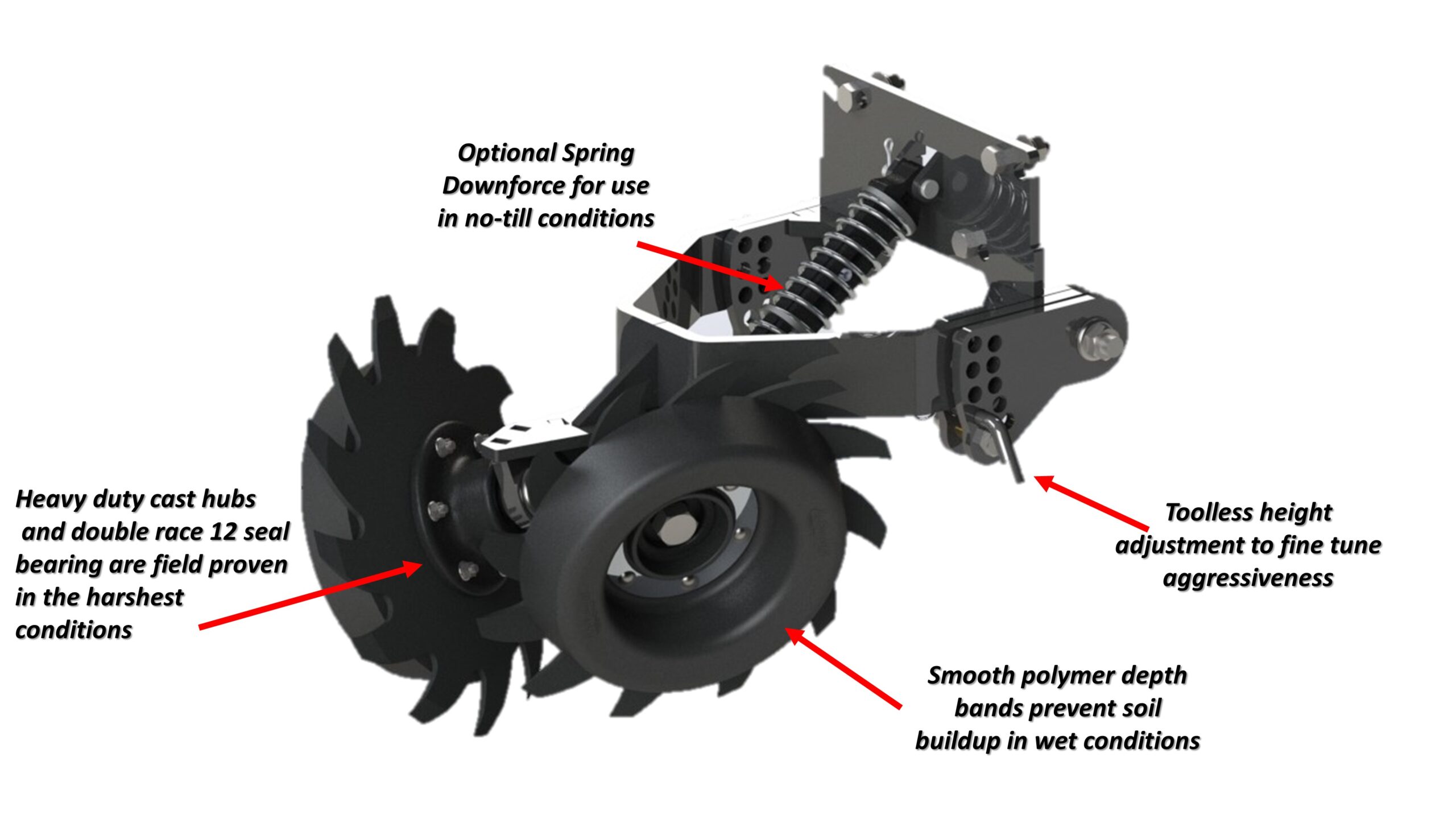 - Compatible with the Precision Planting CleanSweep® for in cab down pressure control (not included)