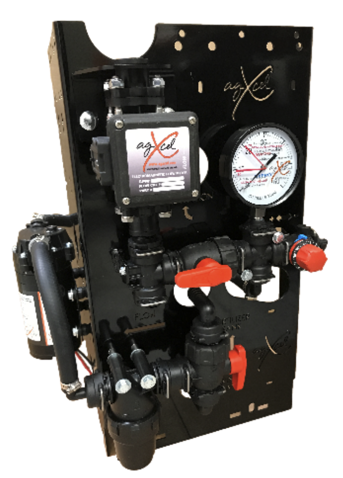 As with all AgXcel precision fertilizer application systems, in an effort to ensure that the GPA requirement is met, comes pre-assembled with a GX2 laser cut powder coated solid stand, dual filters are mounted and all hoses are pre-cut, fitted and plumbed to ensure proper flow is met and system pressure is maintained.