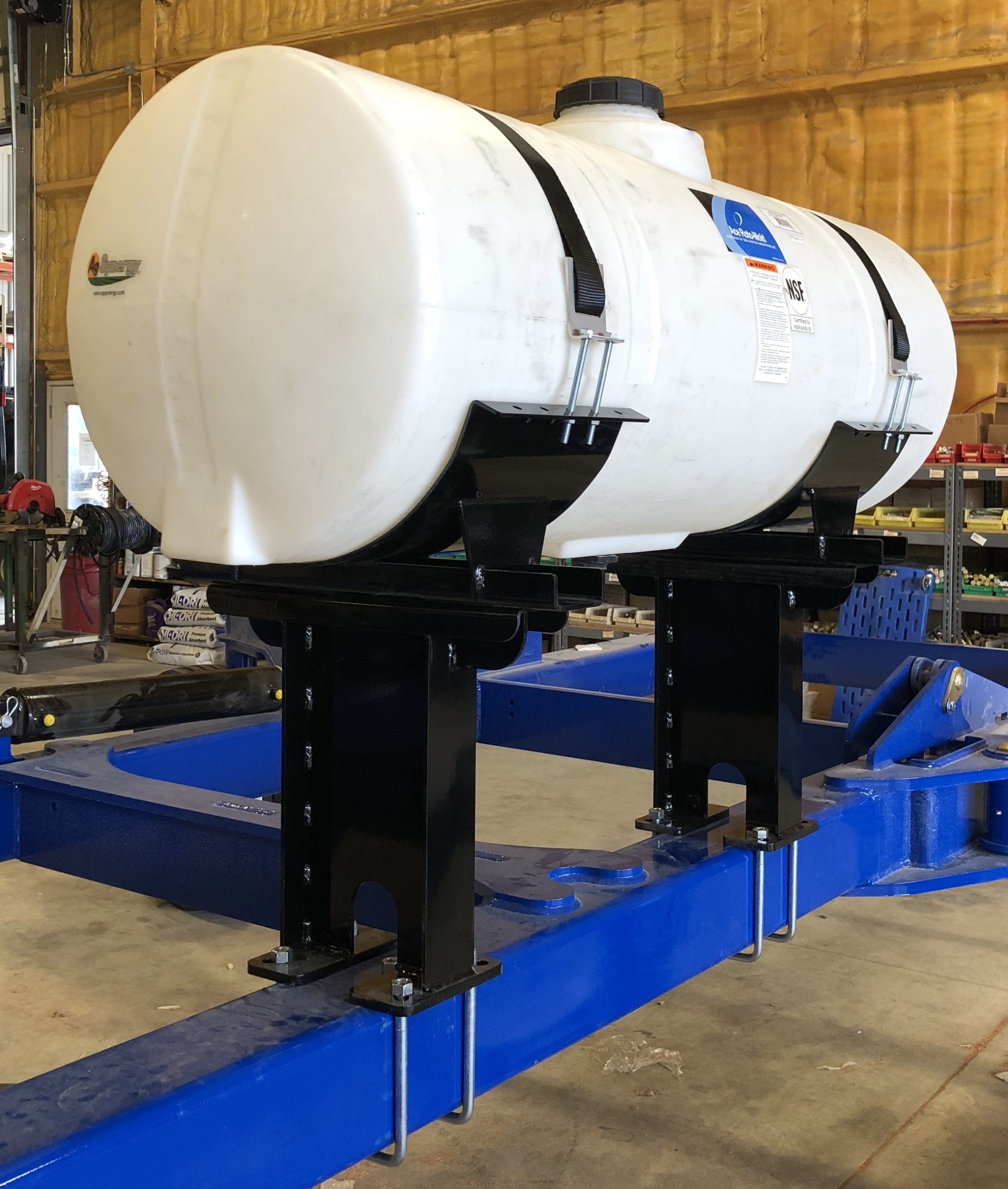 All brackets are engineered, prototyped by installing them on the appropriate equipment to ensure a custom fit and then laser cut and powder coated to withstand even the toughest agricultural environments. Many of our tank and bracket kits are integrated into our line of AgXcel Precision Liquid Fertilizer System as well. This allows for system isolation and ease of management by allowing all aspects of the fertilizer system to be centralized.